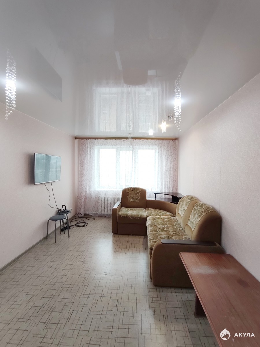 Предлагается к продаже двухкомнатная квартира в центре города, по адресу: проспект Комсомольский, дом 25. Квартира расположена на пятом этаже пятиэтажного панельного дома. Стандартная планировка: раздельные комнаты, совмещённый санузел (полы и стены отделаны кафельной плиткой). Общая площадь квартиры 44.4 кв. м.