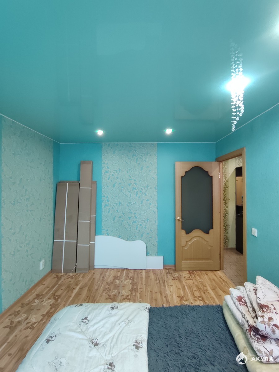 Косметический ремонт, установлены пластиковые окна, напольное покрытие - линолеум, натяжные потолки по всей квартире, новая сантехника, установлены приборы учета на горячую и холодную воду. Балкон застеклён. Остается мебель и бытовая техника.