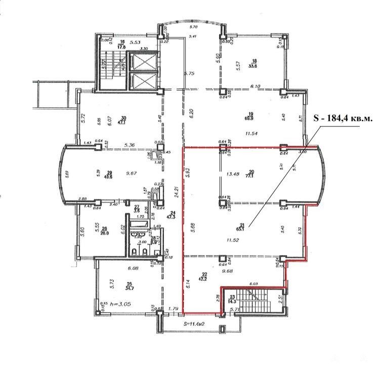 Площадь помещения 184, 4 кв.м., расположено на 6 этаже административного здания в Б/Ц Золотые Башни.