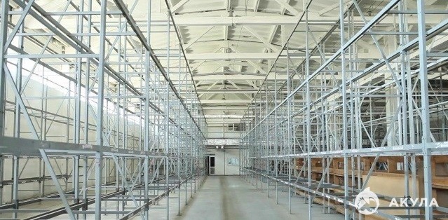Регулируемое автономное отопление (Вулканы), высота потолков 7, 5 м, - установлена стеллажная система , антипылевой пол, трое роллерных ворот с тепловыми завесами, светодиодное освещение.