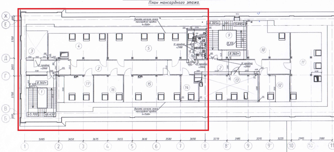 Помещение свободного назначения общей площадью на 3 этаже исторического здания в центре города.