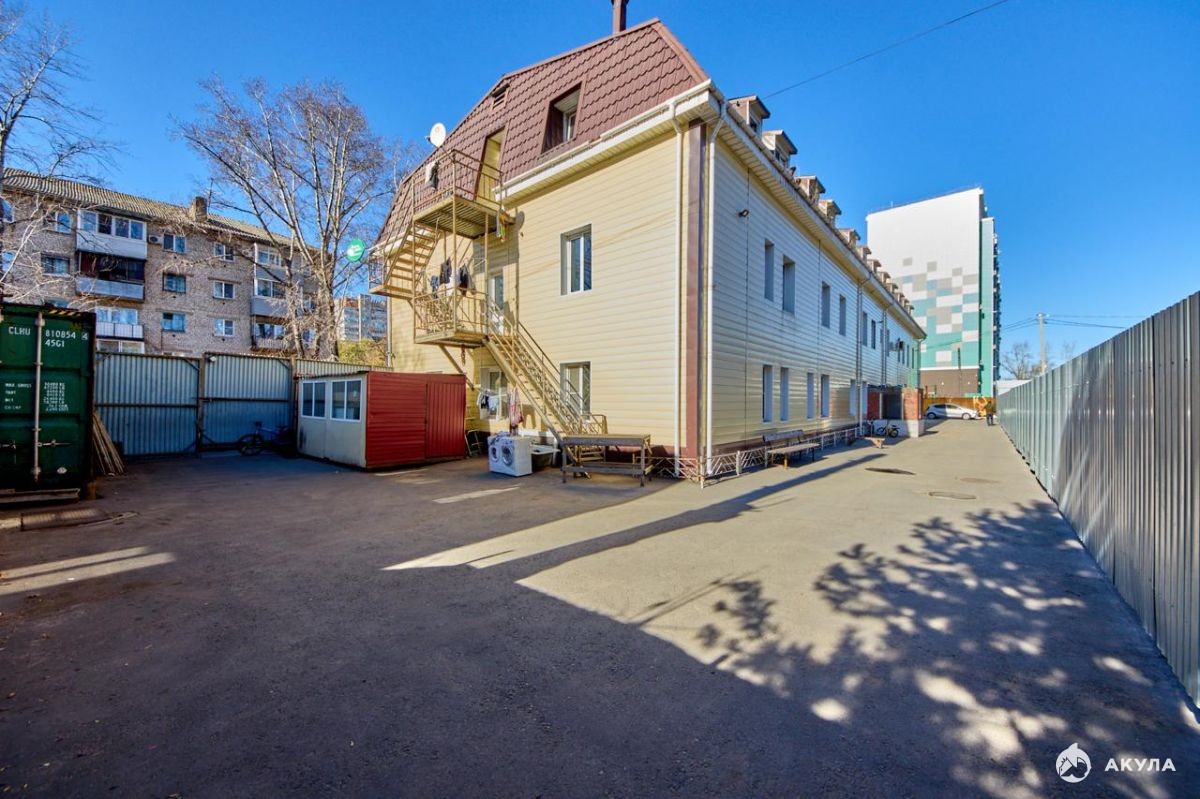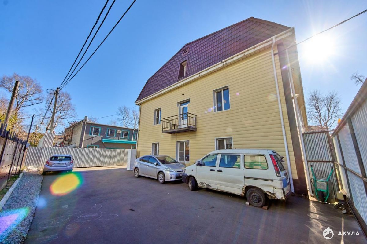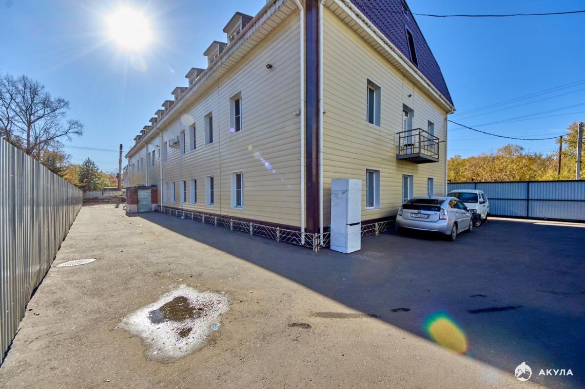 Продаем трехэтажное кирпичное здание, расположенное в Индустриальном районе Хабаровска, проезд Иртышский, 12. Общая площадь здания 1210 кв.м. Каждый этаж коридорного типа, всего 63 комнаты. На первом этаже помещение, предоставленное под столовую, душевые, санузлы на каждом этаже. Коммуникации все центральные, кроме отопления - электрокотел (городское отопление отключили в связи с его нерентабельностью). Назначение здания жилое. Земельный участок в аренде, площадь 1500 кв.м. Огорожен по периметру профлистом.