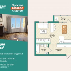 Продаем студию в ЖК Мирный дом, который расположен в с. Мирное Квартал Твердохлебово д. 7. Общая площадь 41, 4 кв.м. Квартира расположена на 2 этаже 5-ти этажного дома. Выполнена предчистовая отделка. Высота потолков 2, 75 метра, большая лоджия. Установлена качественная входная...