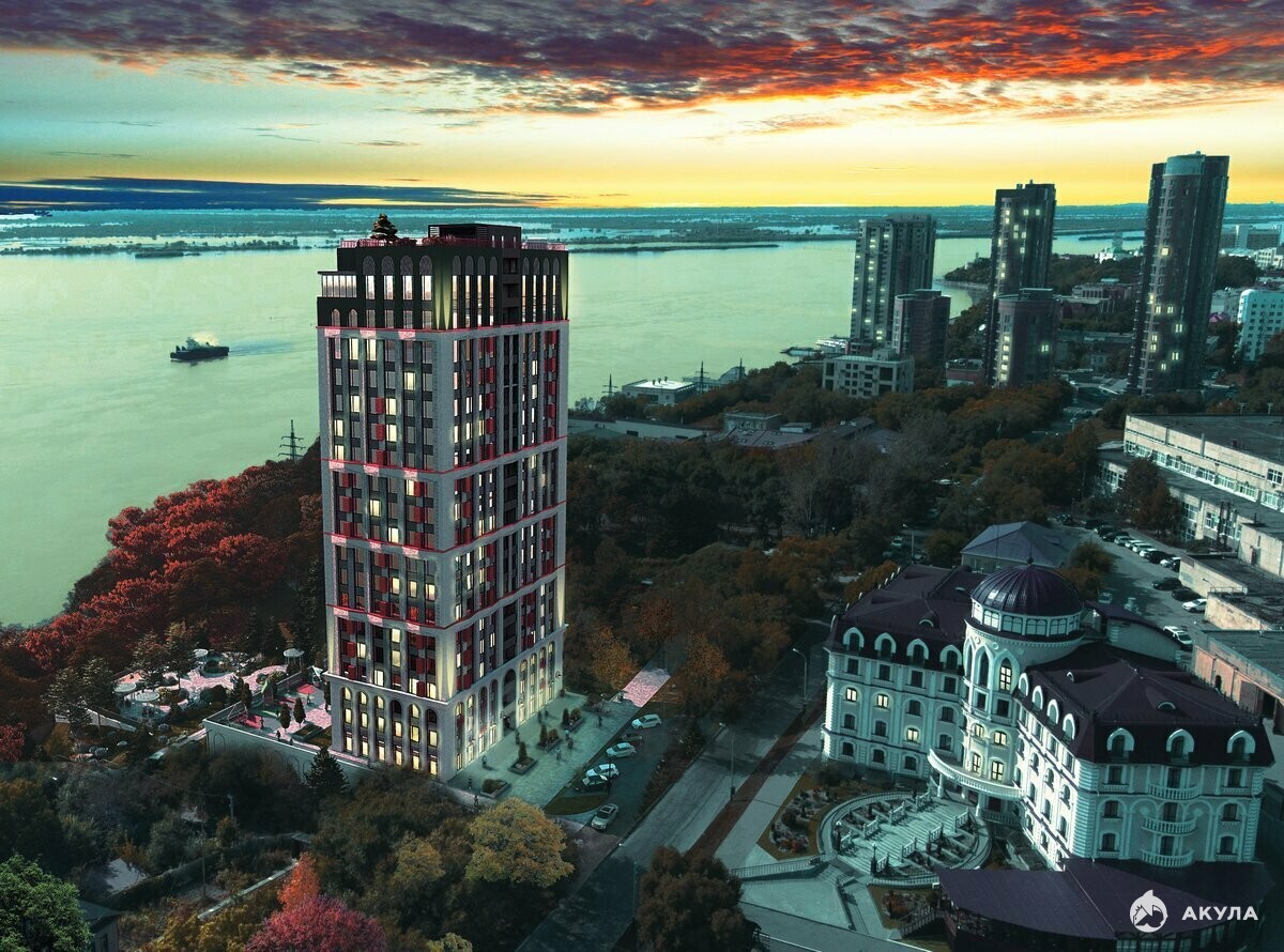 Входная группа в дом выполнена витражным остеклением из теплых алюминиевых профилей Шуко с заполнением двухкамерным стеклопакетом. Вы заходите в дизайнерский холл с высотой потолков 7 метров, где вас встречает консьерж. Здесь есть зона ожидания, гостевой санузел. Через холл можно попасть на закрытую дворовую территорию или пройти к лифтам. На скоростном лифте можно подняться на свой этаж, подземный паркинг или в лаундж зону для жителей ЖК - эксплуатируемую террасу на крыше, на которой можно любоваться видом на город, реку Амур и небо с высоты 70 метров.
