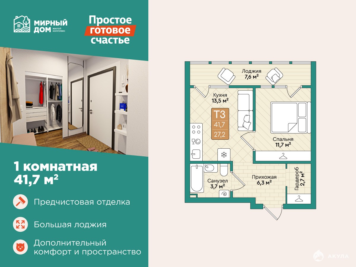 Квартира в жилом комплексе Мирный дом продается как новостройки от застройщика — на них действуют все льготные программы по ипотеке: «Дальневосточная», «Семейная», «IT-ипотека». Кроме того, жилой комплекс Мирный дом находится в сельской местности и подходит под оформление по сельской ипотеке. Можно приехать и посмотреть квартиры с предчистовой отделкой и с готовым ремонтом, все пощупать и потрогать, прогуляться по Мирному, посмотреть, как тут живут люди.