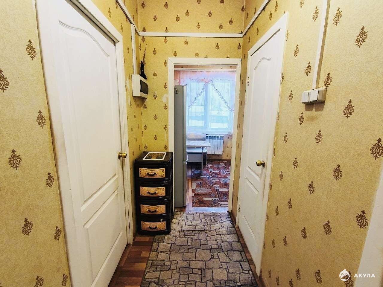 В квартире выполнен косметический ремон, все окна пластиковые, на полу линолеум, просторная кухня.