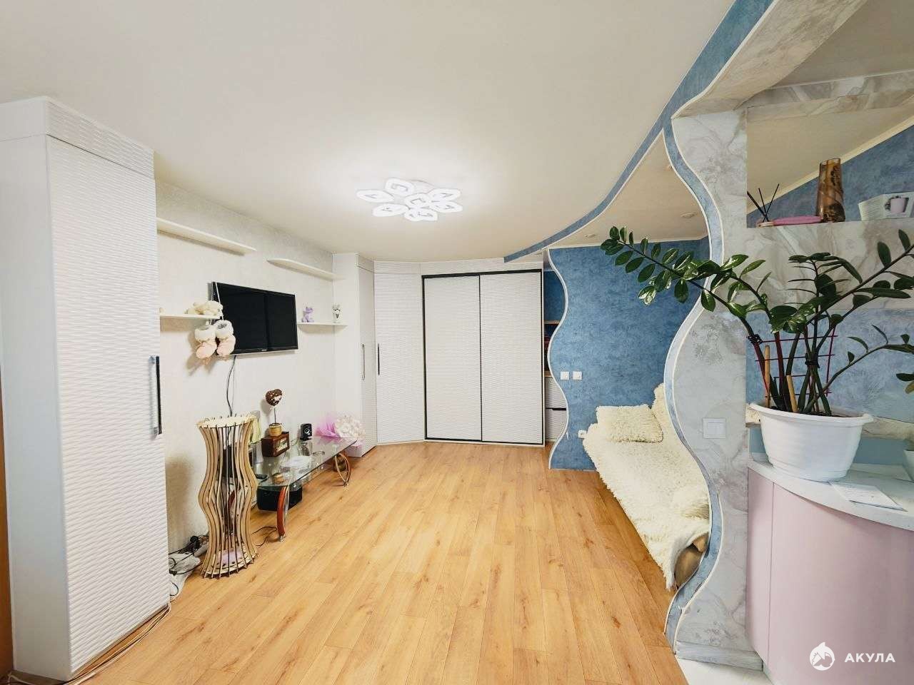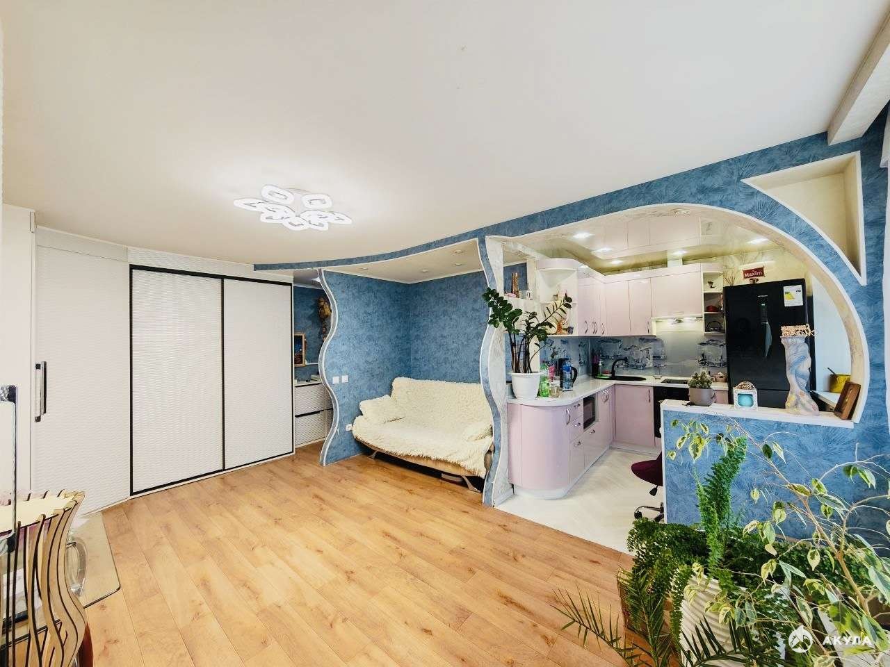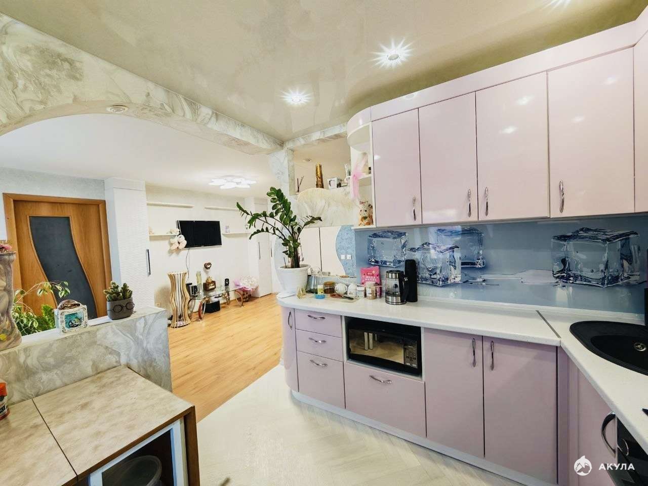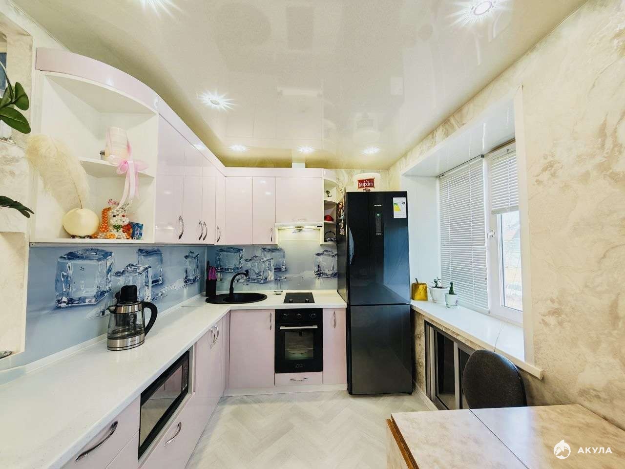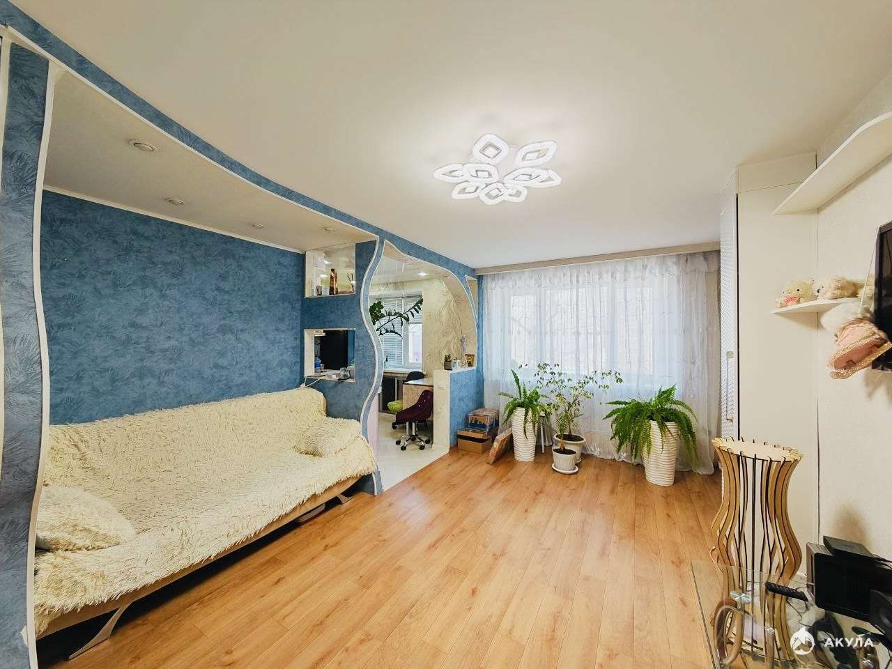 В квартире выполнен качественный ремонт, все окна пластиковые, потолки натяжные,